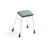 The robust frame is manufactured from powder-coated steel, and the grey vinyl seat and back upholstery are fully sealed. The frame is slightly lower at the front to give the seat a slight incline and to enable the user to raise and lower themselves from the stool easily. The perching stool are equipped with non-marking and slip-resistant rubber tips are supplied as standard for extra safety during bathing.